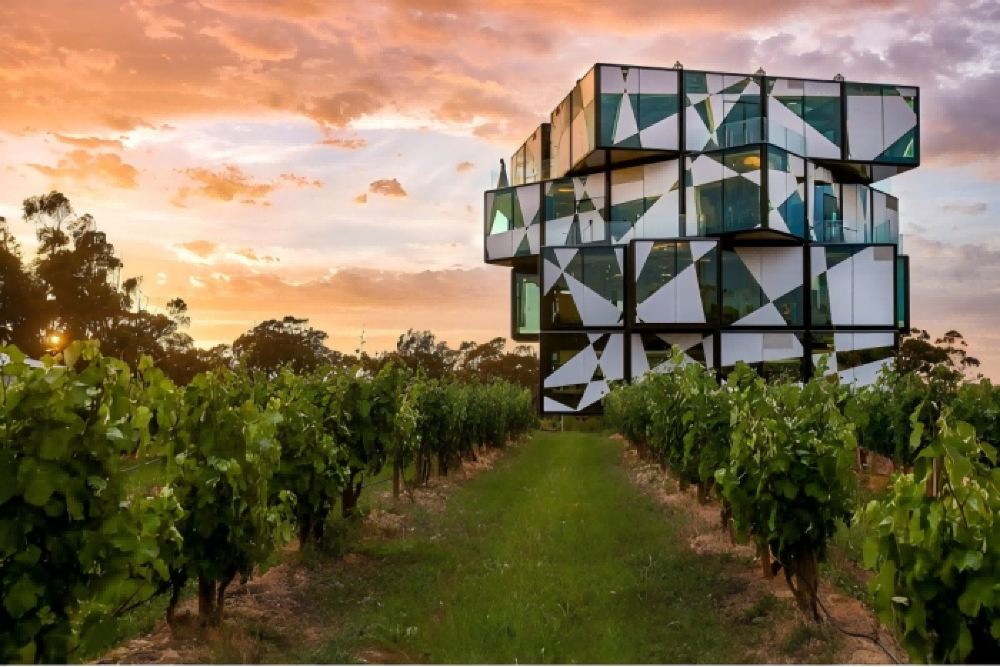 ▲ 黛伦堡魔方 (d'Arenberg Cube)一个耗资数百万澳元,四层、多维度建筑梦想项目。这座角度和色调狂野、以玻璃和镜面建造而成的建筑体坐落在麦克拉仑谷黛伦堡酒庄的山顶。切斯特建造魔方的想法源自2004年。