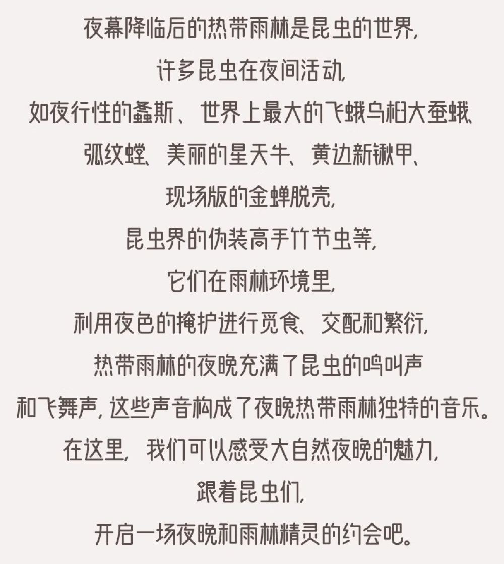 ●只是独立用车,夜游是拼团的,先到大厅讲解昆虫知识(大概50人左右),然后开始夜游(大概15人)。