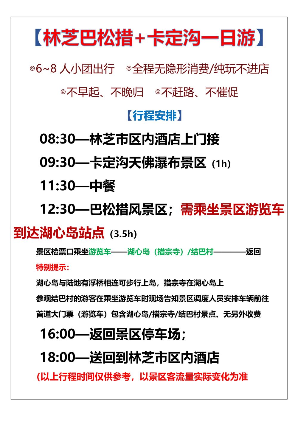 西藏林芝巴松措湖心岛措宗寺结巴村+卡定沟全含价一日游【巴松措景区+湖心岛+结巴村+卡定沟】