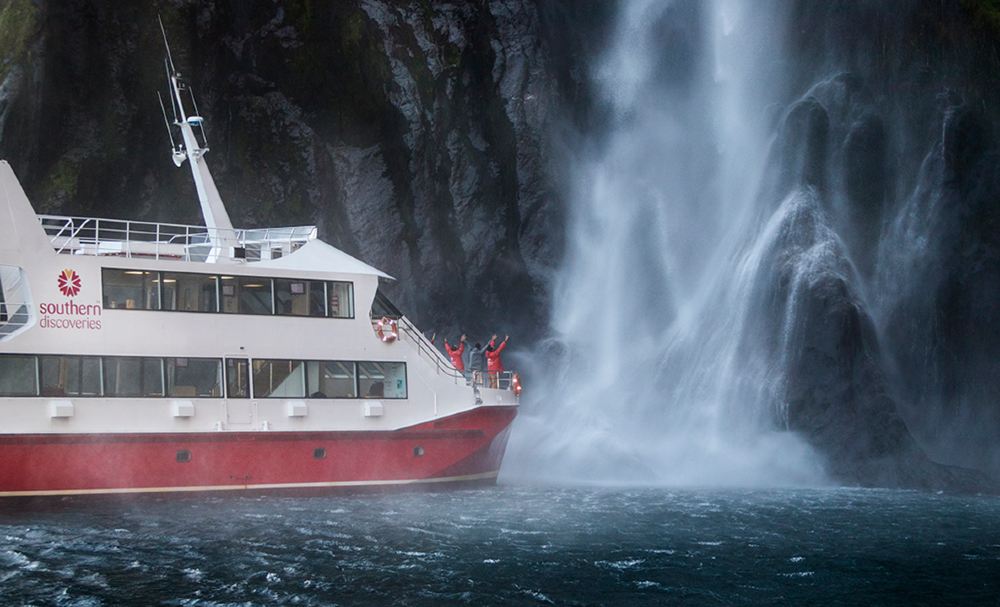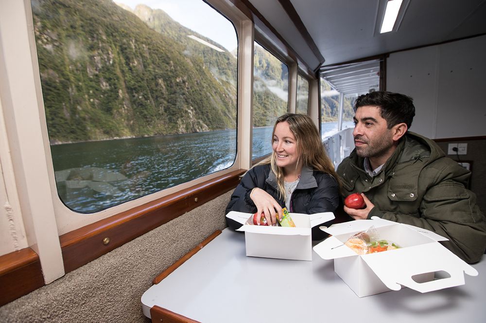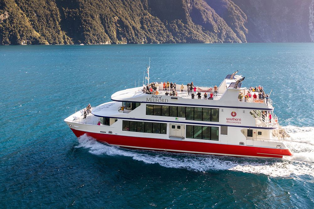 ▲ 登上 米尔福德之傲号双体船,多层甲板与宽敞观景区。船长讲解峡湾地貌与野生动物。