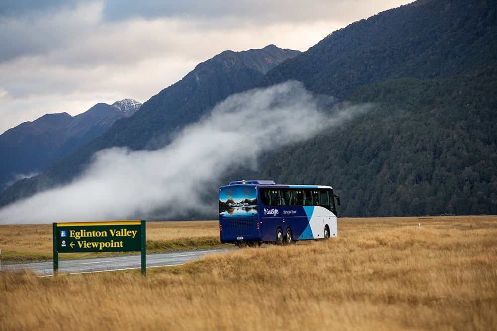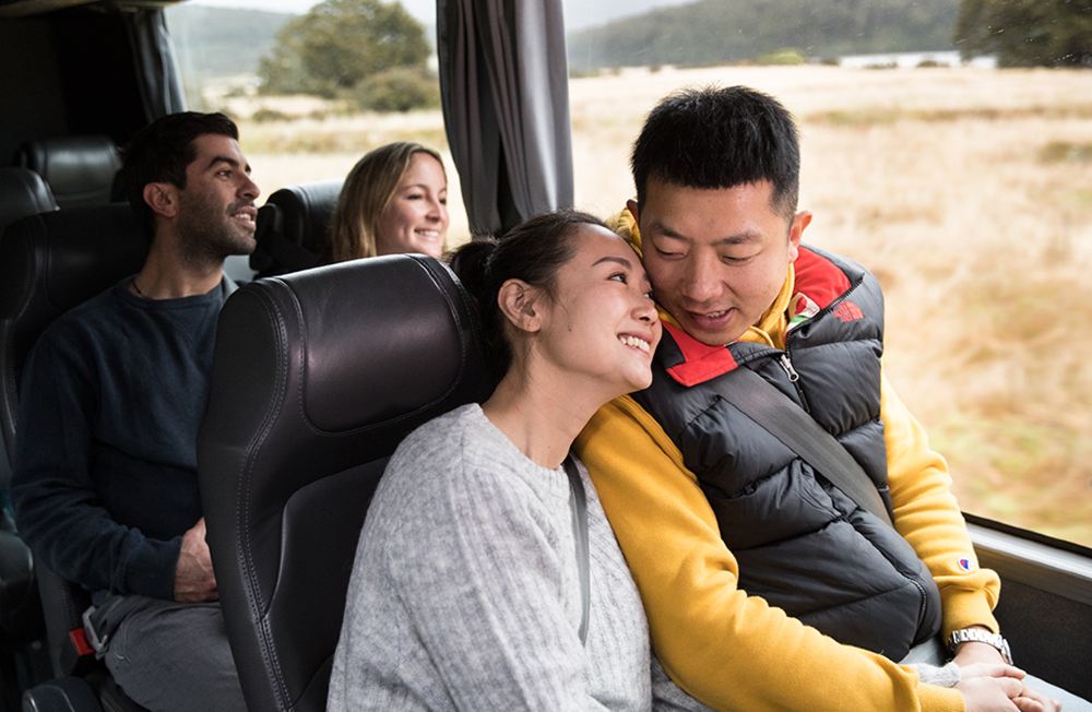 ▲ 乘坐大巴返回皇后镇,全程舒适安全。可选搭乘观光航班返程,俯瞰南岛群山、冰川湖泊与蜿蜒河谷。