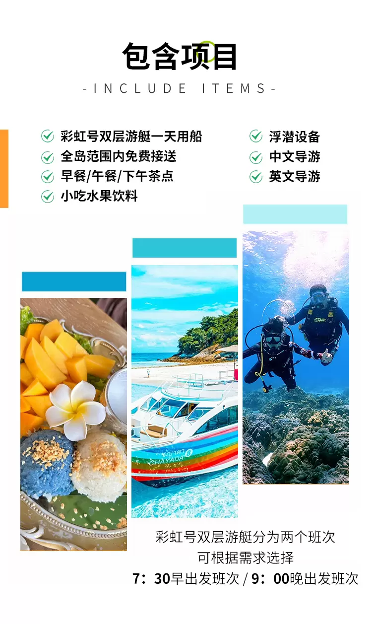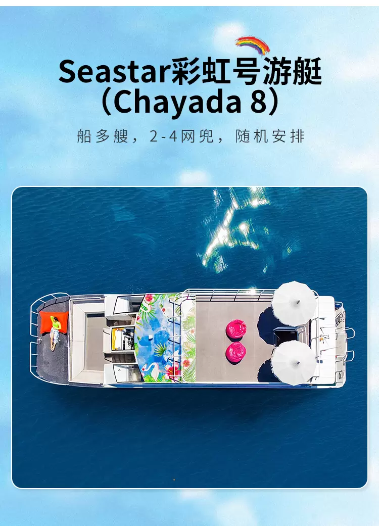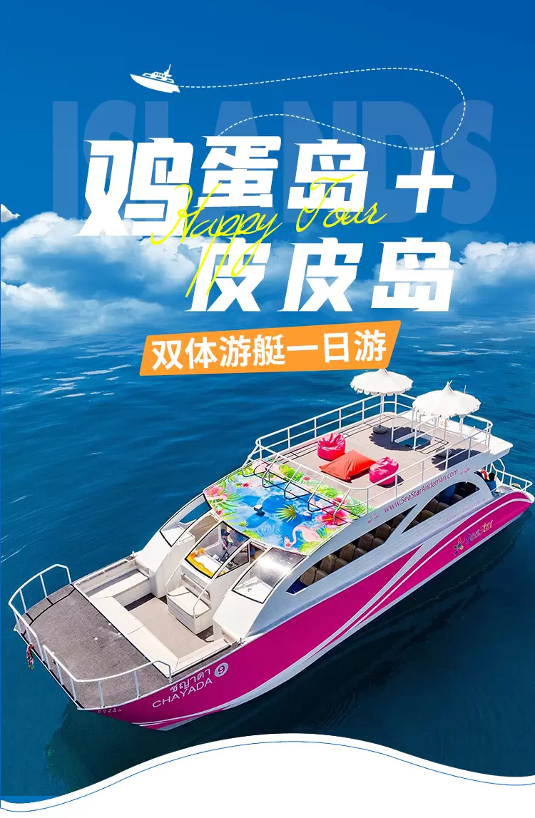 普吉岛皮皮岛+鸡蛋岛一日游【(晚出发)Seasta彩虹号双层游艇出海】