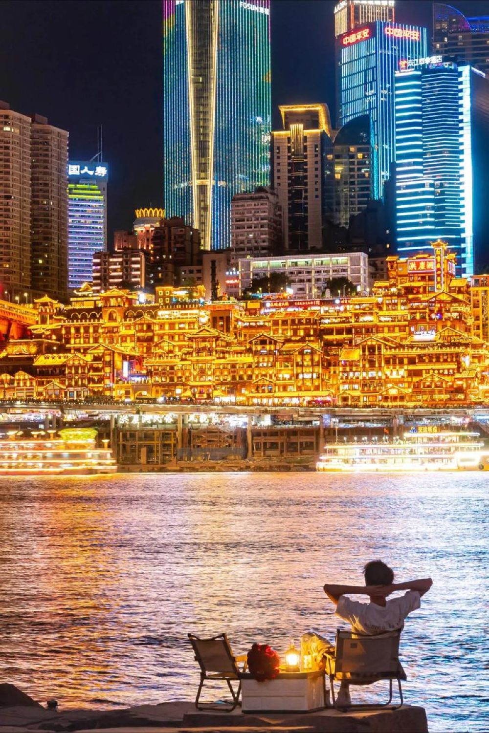 ▲ 洪崖洞民俗风貌区由纸盐河酒吧街、天成巷巴渝风情街、盛宴美食街及异域风情城市阳台四部分组成,以具有巴渝传统建筑特色的吊脚楼为主体,依山就势,通过分层筑台、吊脚、错叠、临崖等山地建筑手法,把这一片建筑汇聚在一起,夜晚时候灯火通明,堪称山城一景。