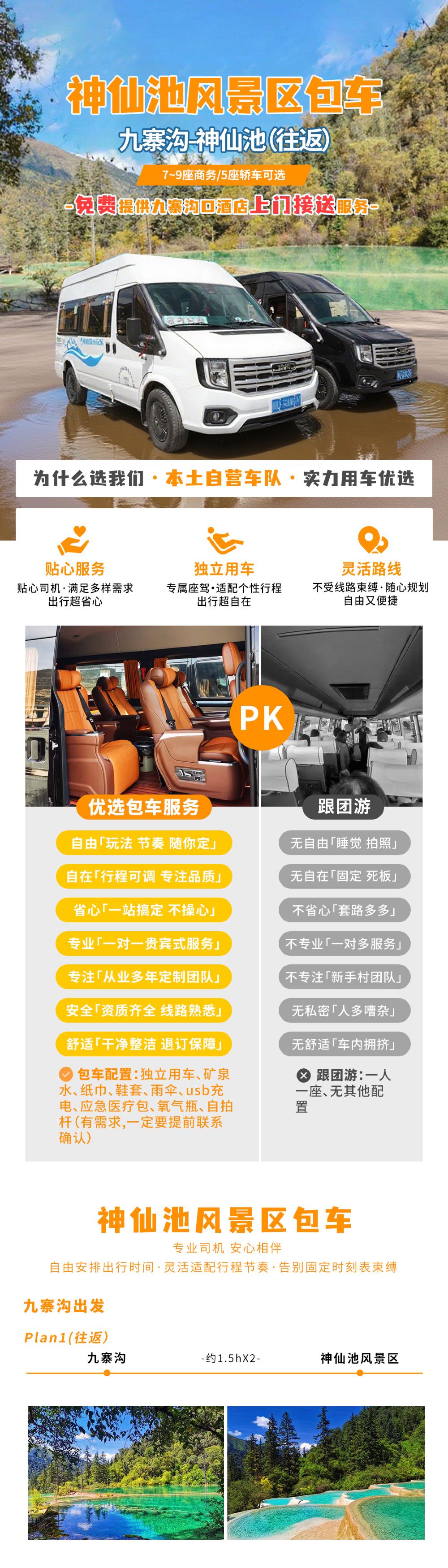 神仙池包车「九寨-神仙池往返」 5/7/9座车 任意时间出发【九寨景区附近10公里以内的酒店都上门接送】