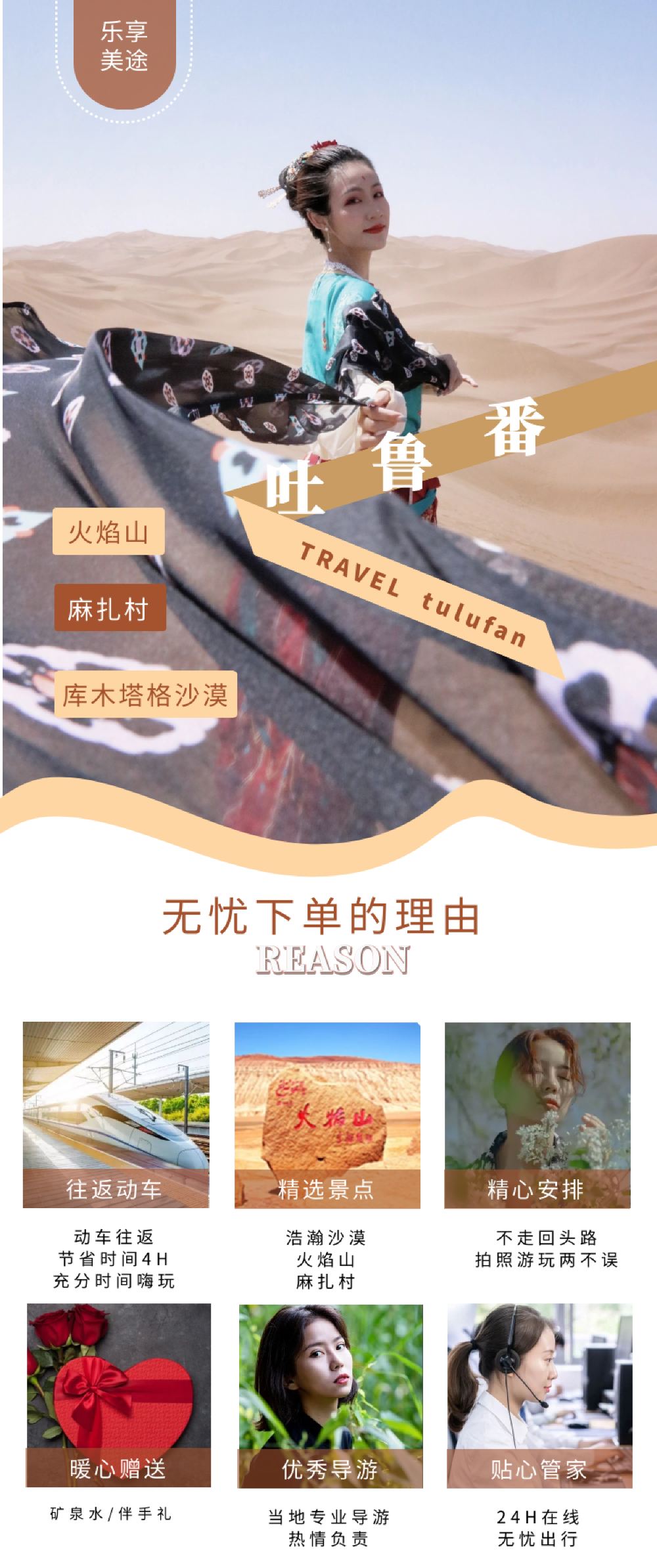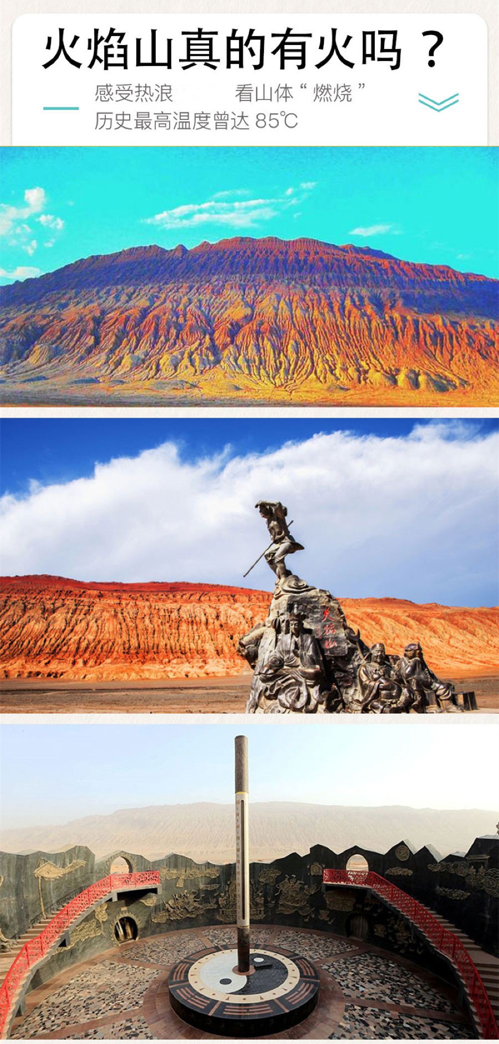 5.游玩景点:火焰山万佛宫,火焰山大峡谷,麻扎村,吐峪沟大峡谷,库木塔格沙漠。