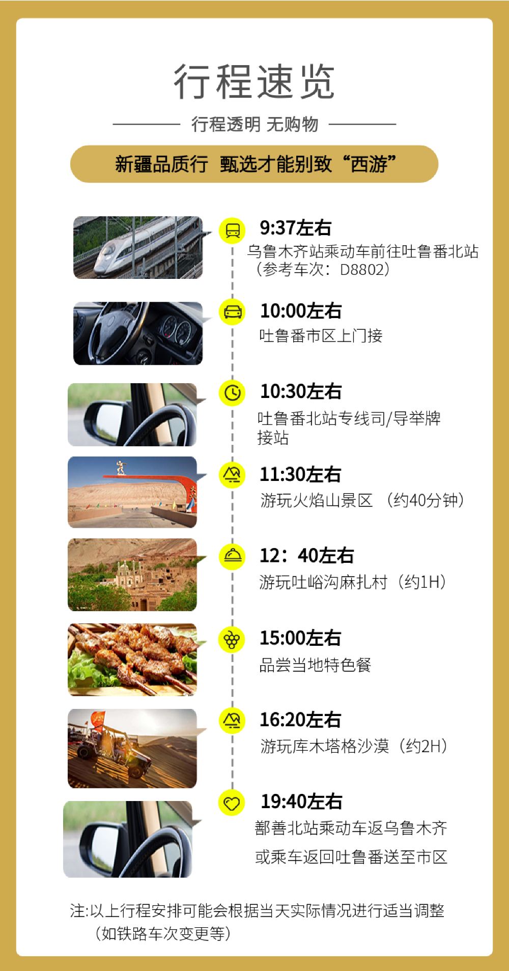 6.儿童说明:儿童价格不含动车票,仅包含当地旅游用车的车位费。