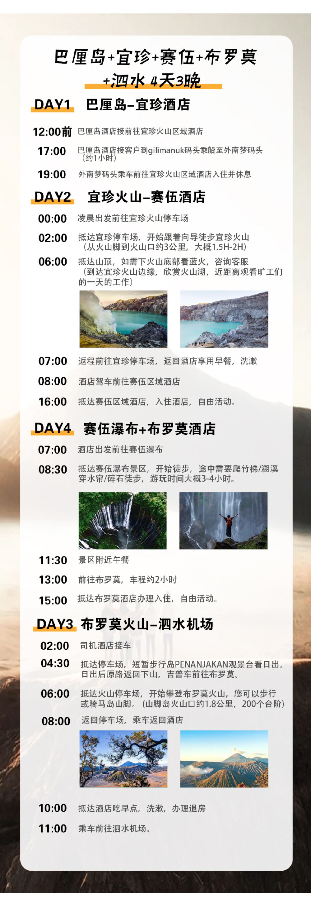 布罗莫火山+伊真火山一日游【蓝色火焰玛琅泗水bromo徒步】【两人可成团,玩家级别领队,为您量身合适的行程安排及建议】