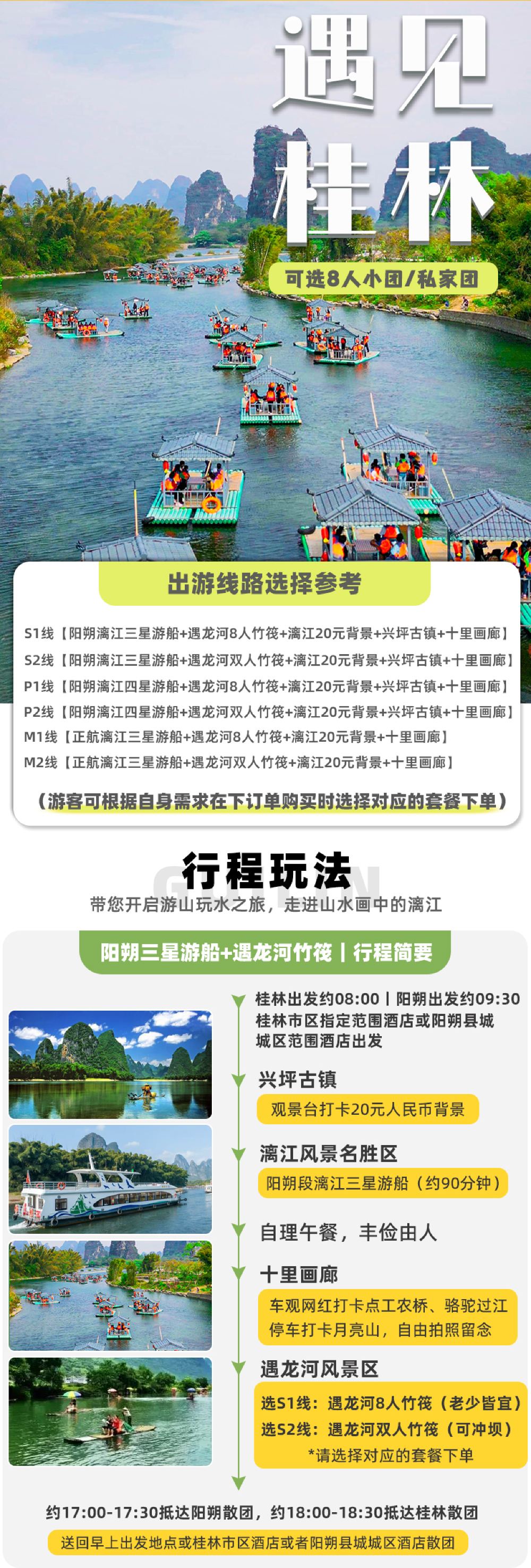 M1线【正航漓江三星游船+遇龙河8人竹筏+漓江20元背景+十里画廊】