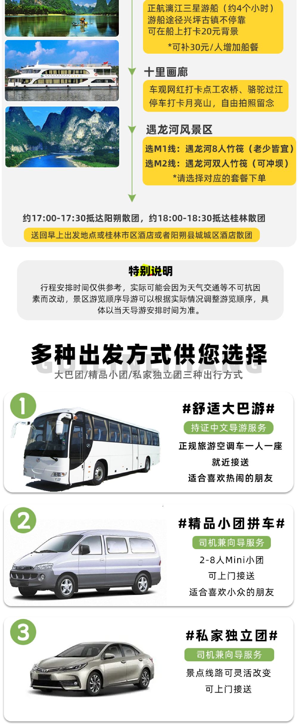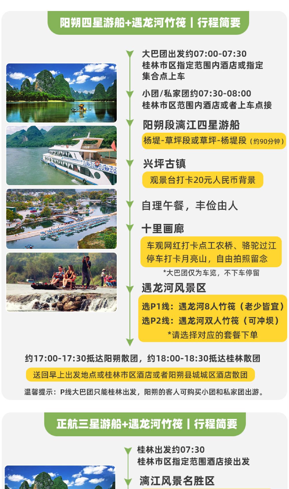 特别说明:正航三星漓江游船节假日出游会出现抢票的情况,需要预付费用抢票,出游当天退回,如介意,请勿下单正航三星套餐。