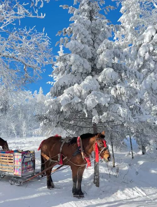 ▲ 景区呈现冰雪童话世界的景观,包括: - 雾凇雪凇奇观:雪岭雾凇带长达 12 公里,雪凇厚度可达 15-25 毫米,松枝被冰雪包裹成 “雪蘑菇”“冰珊瑚” 等造型,与云海交织成景。 - 全景视野:天气晴朗时,可远眺长白山主峰雄姿,俯瞰延绵的长白山林海。 - 特色体验:雪地摩托(120 元 / 半小时)、马拉爬犁(120 元 / 人)、驯鹿互动(免费参观,苔藓投喂 30 元 / 包)等项目同步开放。