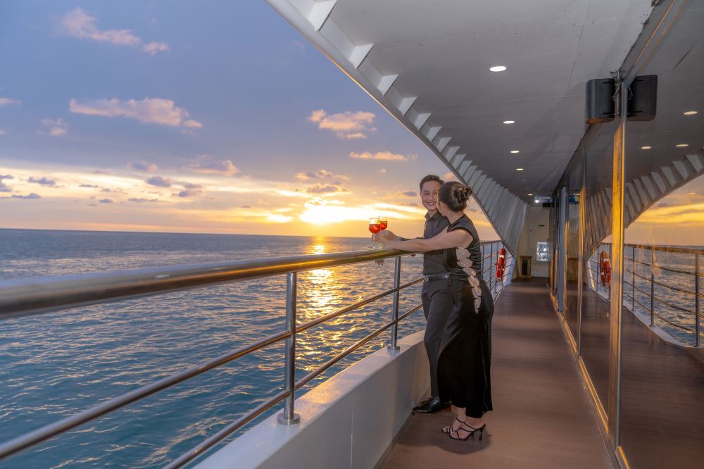 鹦鹉螺号日落巡航之旅:梦幻日落与晚餐【在鹦鹉螺号豪华游轮上欣赏美丽的日落。 乘坐五星级游轮“鹦鹉螺号”,欣赏南部美丽的岛屿和夕阳余晖下的城镇。 高级自助餐,菜品种类丰富,从海鲜到当地特色菜应有尽有。】