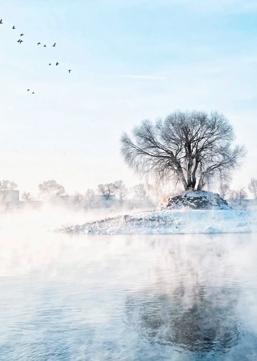 ▲ 寒江锁雾,玉树凝霜。一半是冰雪的清冽,一半是落日的温柔。