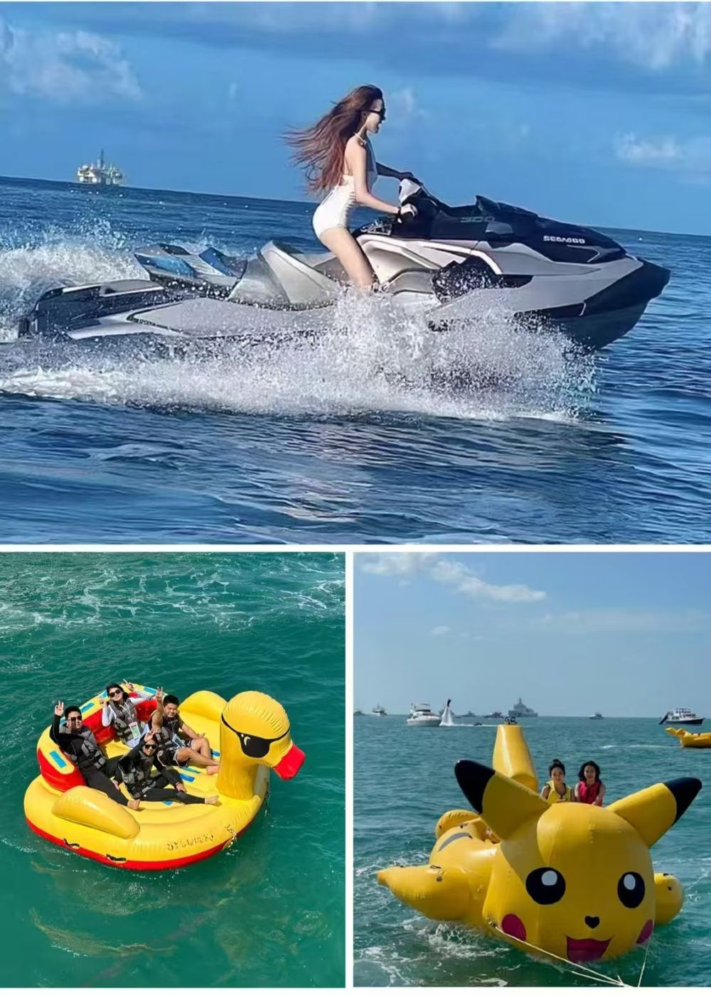 往返船票、远海船潜30分钟、摩托艇环岛体验、极速小黄鸭拖拽体验、教练全程1对1服务