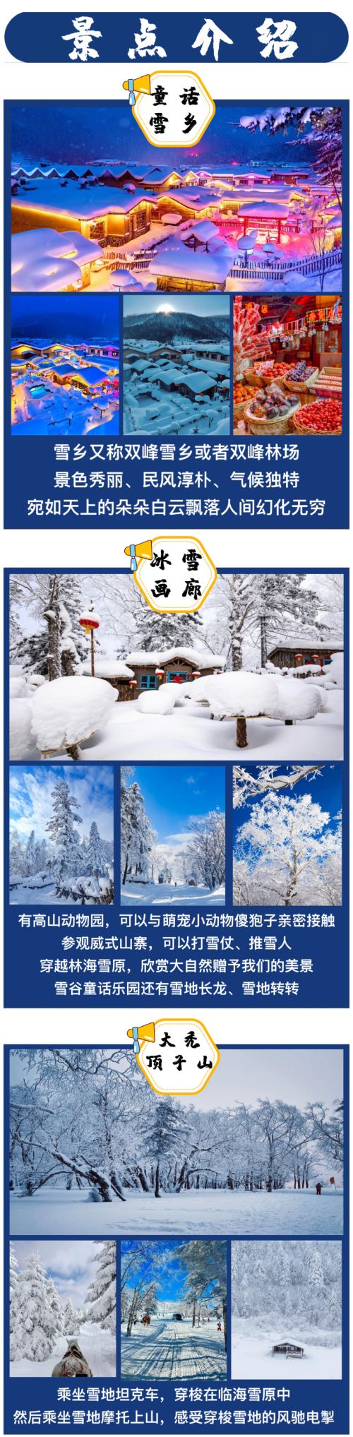 【赠送雪上飞碟、驯鹿园、雪地寻宝】马拉爬犁、亚雪公路、冰雪/十里画廊、高山动物、雪地长龙、雪乡、雪乡大石碑、雪韵大街、棒槌山观景台