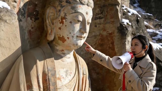 ▲ - 我国现存规模很大、题材很丰富、保存完好的纯道教石窟 - 冬日的龙山宛如宁静水墨画,古老石刻在阳光下更显庄重神秘 - 后山有北齐开凿的童子寺大佛及全国古老的石质灯塔