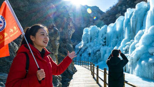 ▲ -太原冬日限定小众秘境,位于天龙山余脉,游客较少 - 冰瀑形态各异,从入口到龙山瀑布,大小冰瀑相连,宛如蓝冰钻石海 - 游览方式灵活:可从山顶石窟博物馆下行,或从窑头村停车场上行