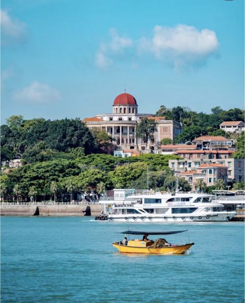 ▲ 鼓浪屿三面环海,素有"海上花园"之美誉,岛上风景秀丽,空气清新,处处鸟语花香,宛如一颗璀璨的"海上明珠",镶嵌在厦门海湾的碧海绿波之中