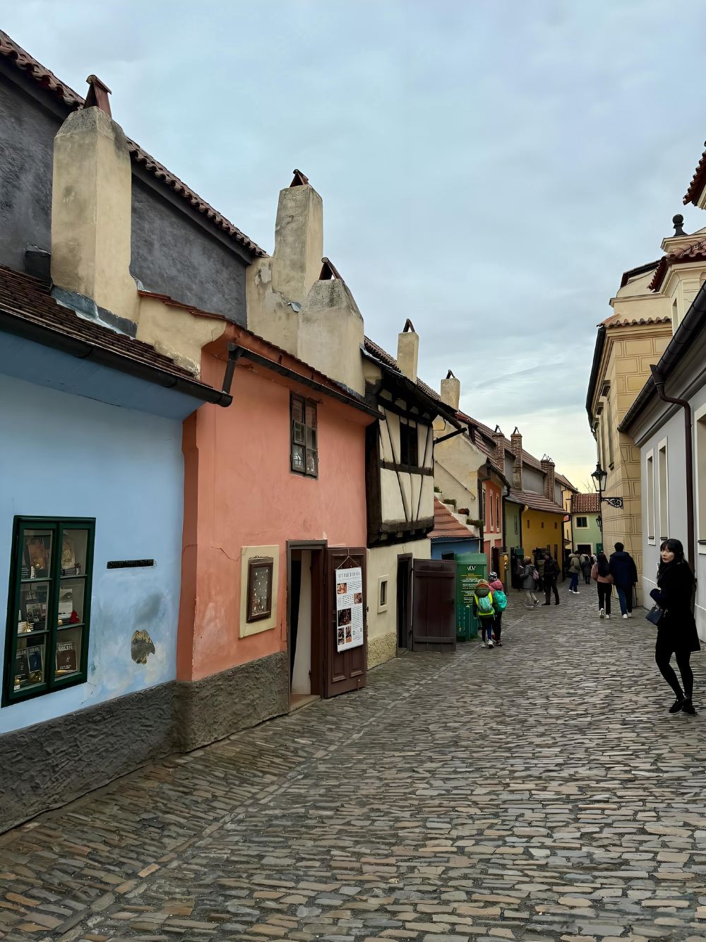 ▲ 黄金巷:狭窄鹅卵石小巷,16世纪矿工与工匠居所,如今是彩色小木屋商铺,卡夫卡曾居住于22号