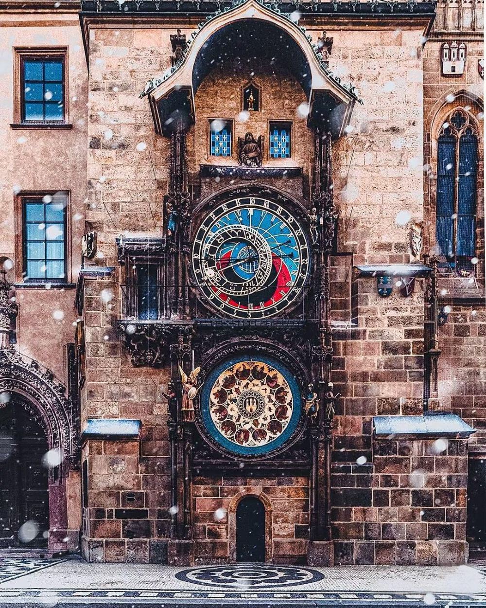 ▲ 布拉格天文钟:1410年建成的中世纪机械奇迹,整点时12门徒玩偶依次现身报时
