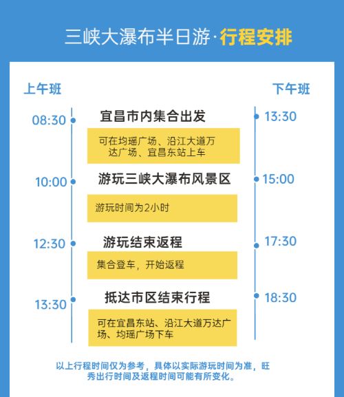 宜昌三峡大瀑布半日游【老少皆宜/每天两班/品质纯玩】【1、每天发班,每天上午/下午两个班次,任您选择!】