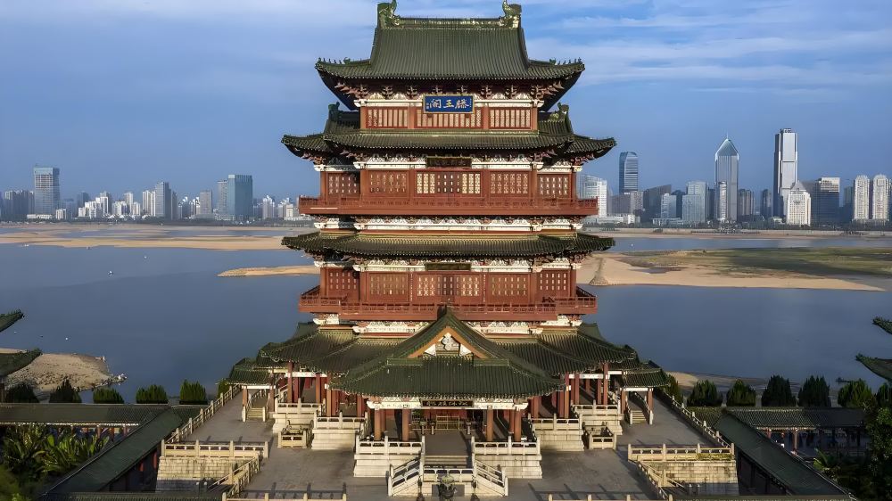 滕王阁,位于江西省南昌市东湖区沿江路,地处赣江东岸、赣江与抚河故道交汇处,为南昌市地标性建筑、豫章古文明之象征。始建于唐永徽四年(653年),为唐太宗李世民之弟滕王李元婴任江南洪州都督时所修,现存建筑为1985年重建景观;因初唐诗人王勃所作《滕王阁序》而闻名于世;与湖南岳阳岳阳楼、湖北武汉黄鹤楼并称为“江南三大名楼”,是中国古代四大名楼之一、“中国十大历史文化名楼”之一,世称“西江第一楼”。