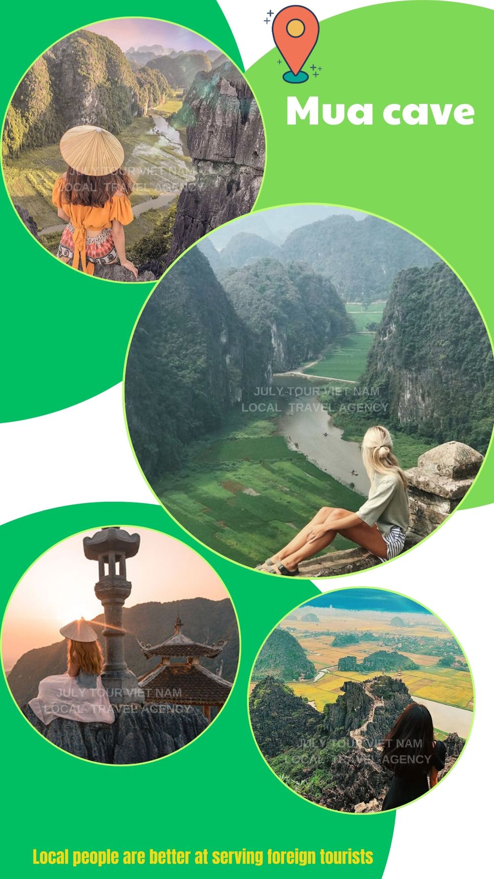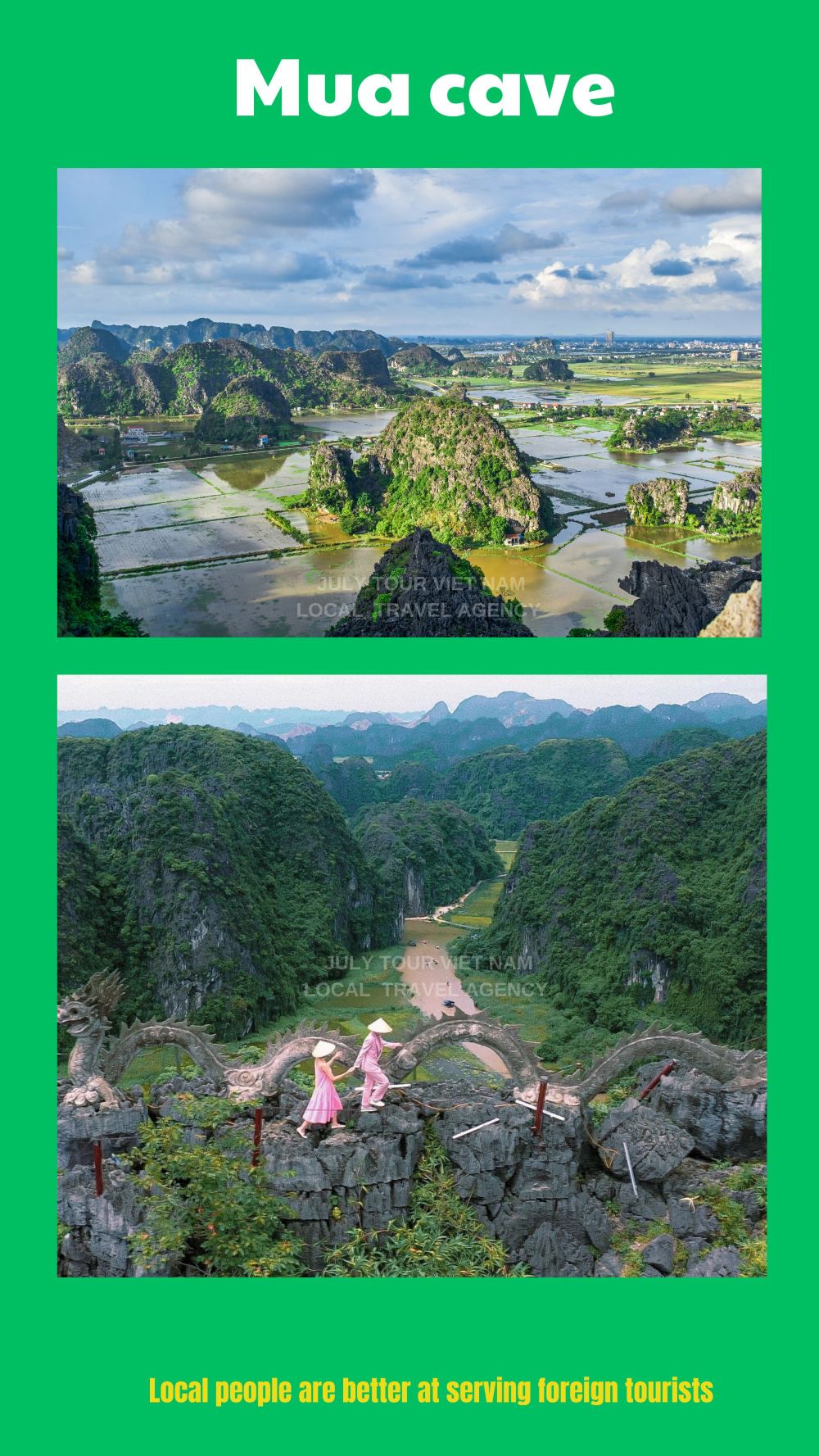 15:30: 前往舞山Mua Cave,在这里游客登山俯视三谷Tam Coc全景。