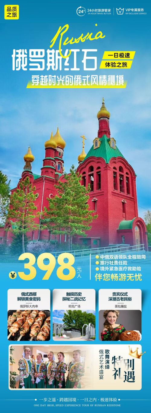 五:每年9月25至第二年5月20日为旅游淡季(国庆假期除外),不一定每天成团,因为中俄免签是国家政策,需要够4人才可以免签证,所以下单前请先咨询客服,介意慎拍。