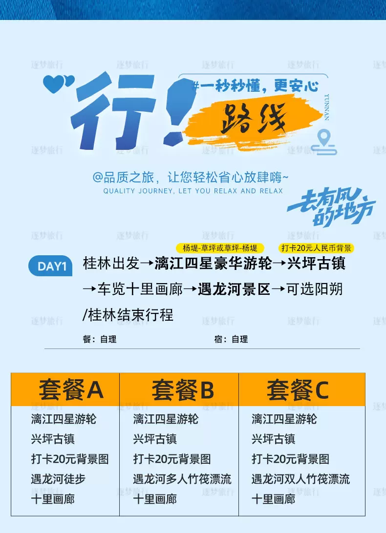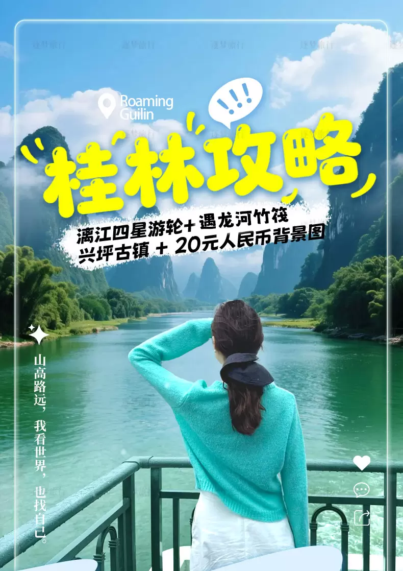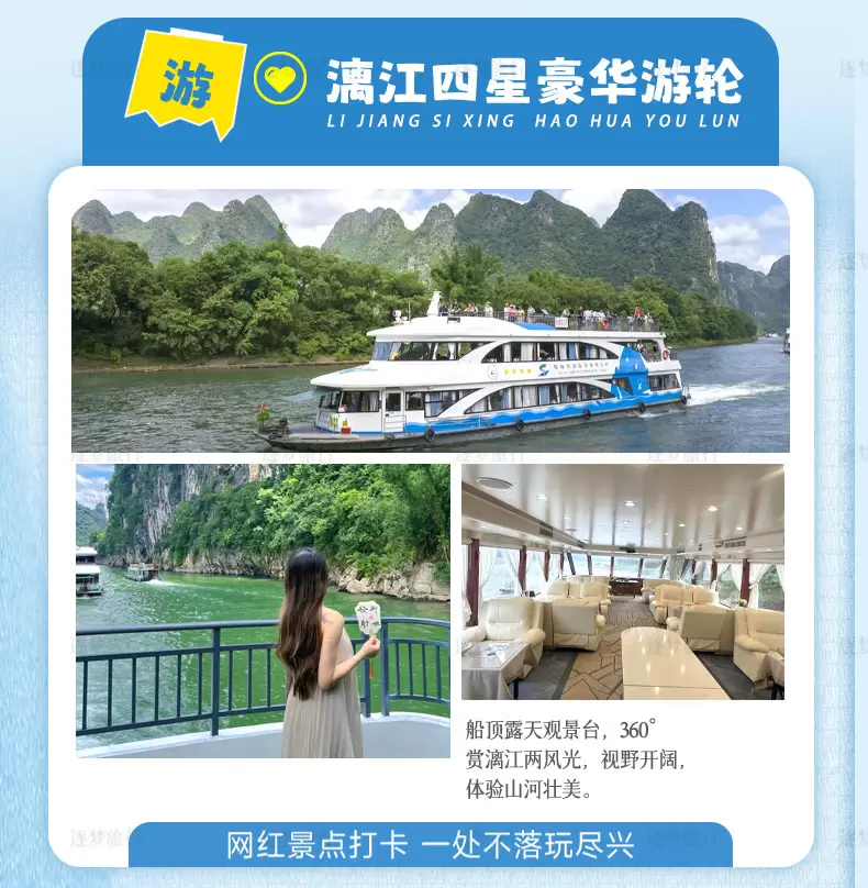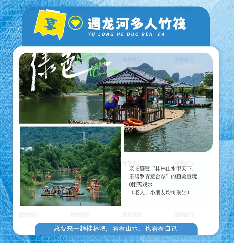 桂林漓江+遇龙河景区+十里画廊+兴坪古镇一日游【漓江四星游船+漫步遇龙河+兴坪古镇+十里画廊纯玩一日游】