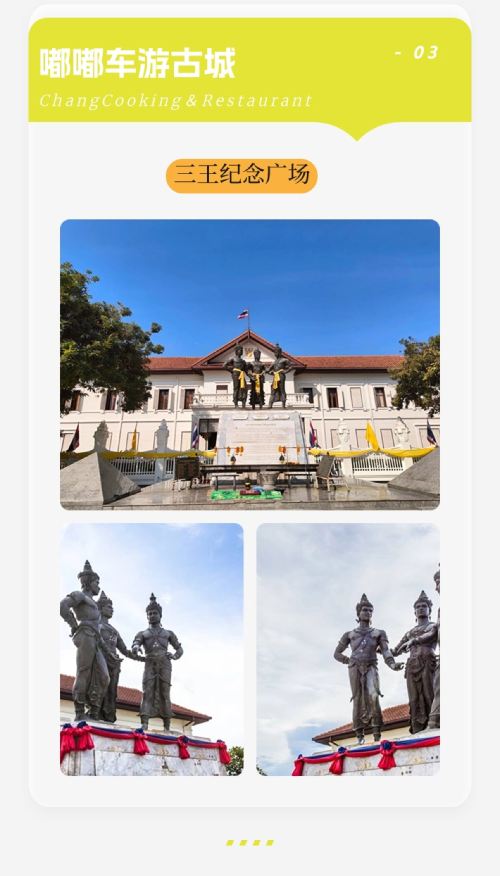 乘坐嘟嘟车游览清迈古城,参观不同的寺庙并听导游讲解有趣的故事。