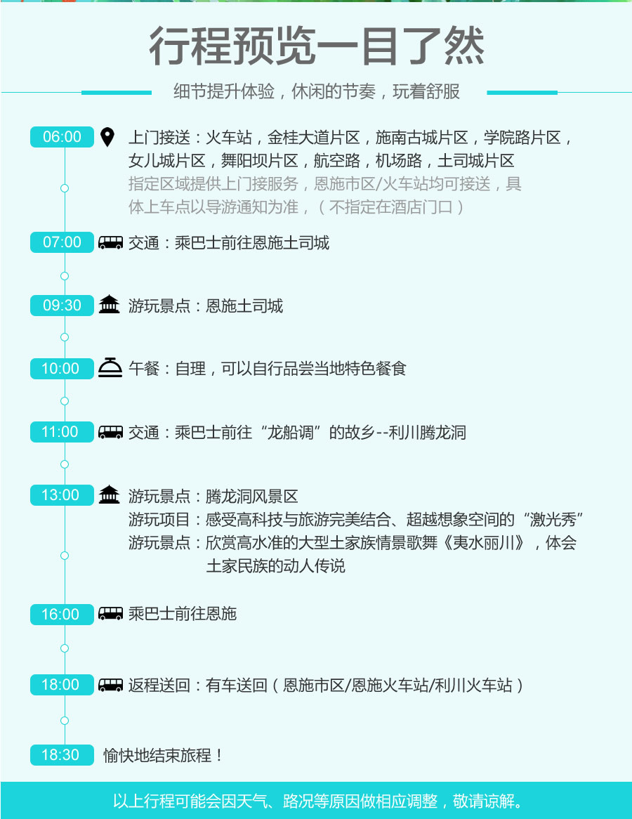 1.恩施火车站或城区免费接送,无需东奔西找。