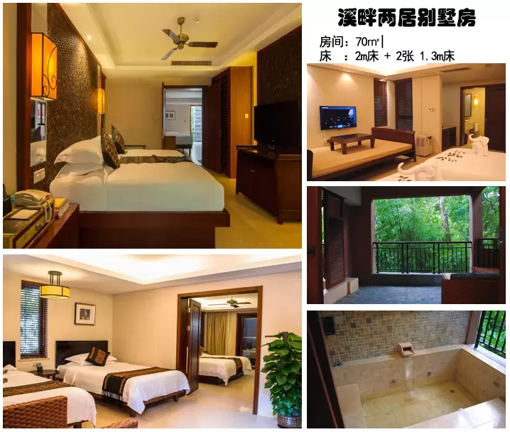 【溪畔别墅两居 2天1晚】七仙岭君澜度假酒店(1晚住宿)+双早+私家温泉/户外野溪温泉+叠层泳池吧糖水4份