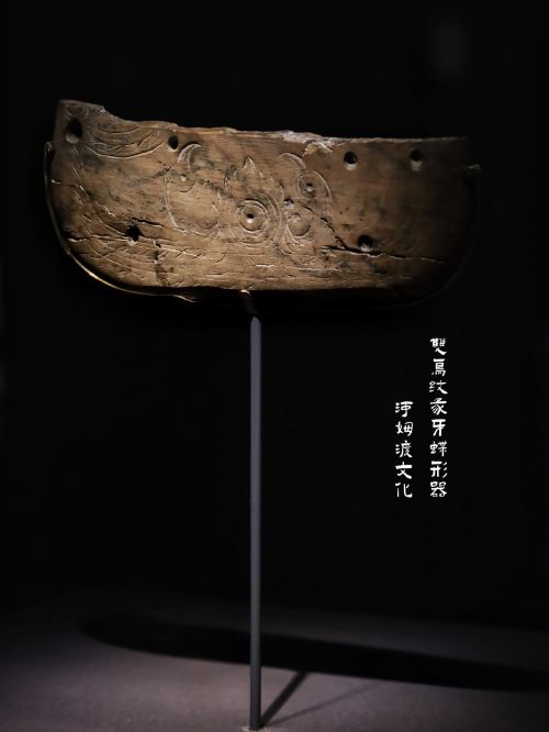 A馆(一楼): 四件镇馆之宝(河姆渡—双鸟朝阳纹象牙蝶形器;良渚—玉琮王;伎乐铜屋。