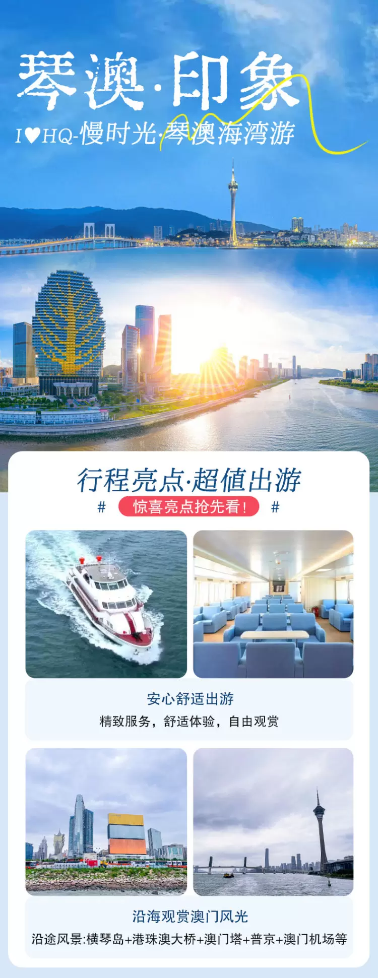 珠海琴澳海湾游+观港珠澳大桥【横琴码头出发一站式打卡横琴澳门沿海景观】
