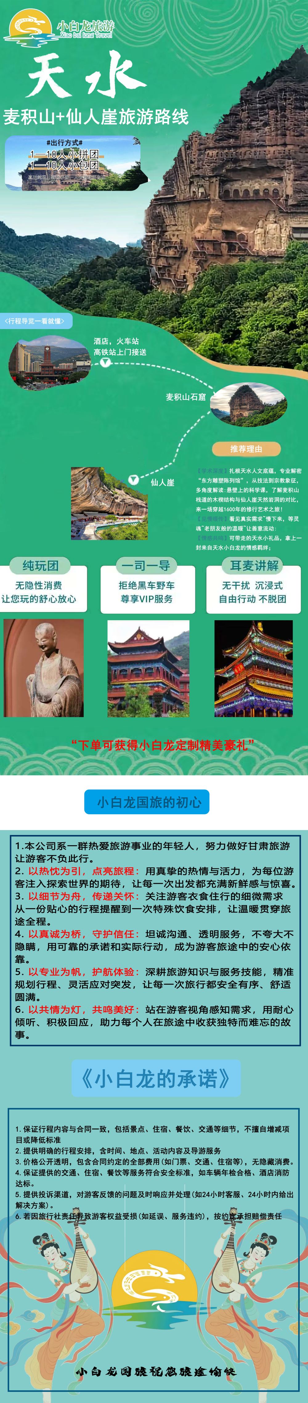 【小白龙甄品】麦积山石窟+仙人崖/导游登窟耳麦讲解/上门接送【[文化自然双遗产]石窟艺术+山水秘境(上午探访千年麦积,下午漫步仙人崖,穿梭三崖五峰六寺天然画廊)!】