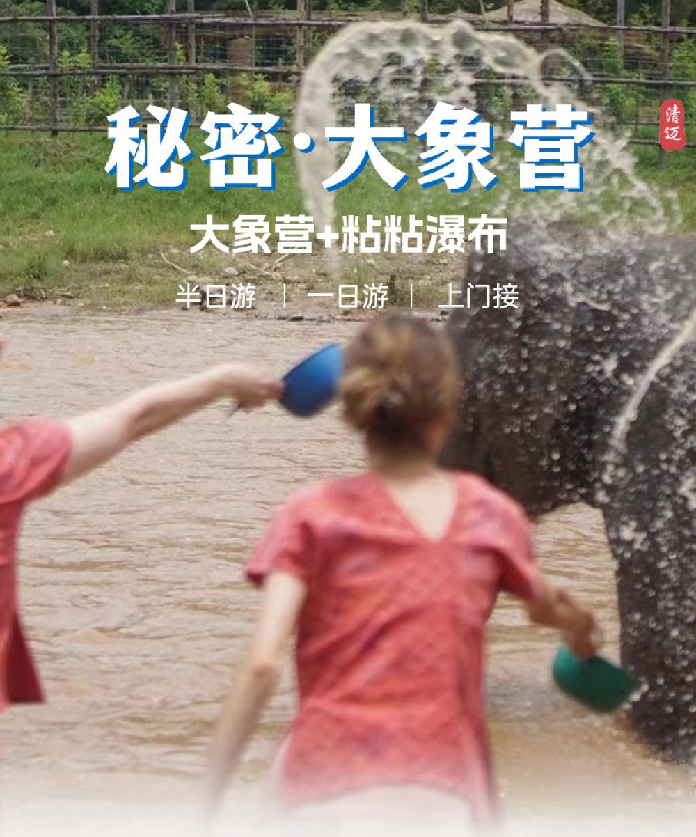 游玩说明:如下水给大象洗澡,请备好更换的衣物。