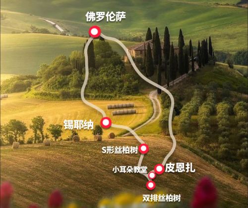 ▲ 私家纯玩小团 优质华人司机 深度畅游行程 皮恩扎(意大利语:PIENZA)是意大利中部托斯卡纳大区锡耶纳省的一个市镇,毗邻蒙塔尔奇诺,被称为“文艺复兴都市生活的试金石”。1996年,被联合国教科文组织宣布为世界遗产。 奥尔恰谷是锡耶纳省的一个地区,山谷中遍布数不清的旅舍、酒店、医院和驿站,几个世纪以来,这里为大量的游客提供了便利。 小耳朵教堂是一座1590年修建的小教堂,位于小山坡上。因教堂两侧的柏树酷似一对可爱的精灵耳朵而得名。在电影《托斯卡纳艳阳下》仅以几秒的镜头露脸以后快速走红