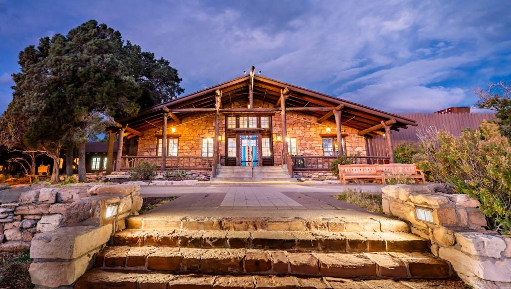 看看Bright Angel Lodge的独特历史特色,然后走出去欣赏峡谷景色。这座小屋位于峡谷西端村庄历史区的边缘,类似于一个漫无边际的拓荒者定居点,有各种建筑,以裸露的木材、土坯和天然岩壁为特色。旅馆有两家餐厅、一家礼品店、休息室、喷泉和咖啡店、一个小博物馆和一个交通服务台。