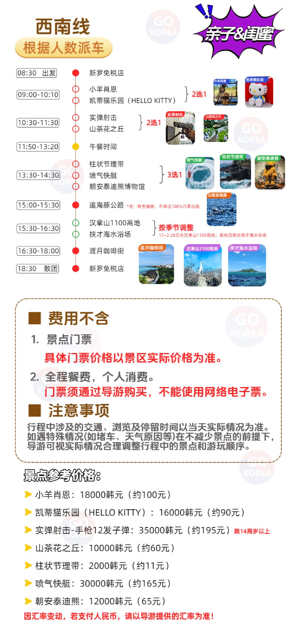 济州岛一日游【新】拼车纯玩西南线【亲子&闺蜜】公路追海豚【纯玩无购,中文服务!省钱便捷的拼车自由行】