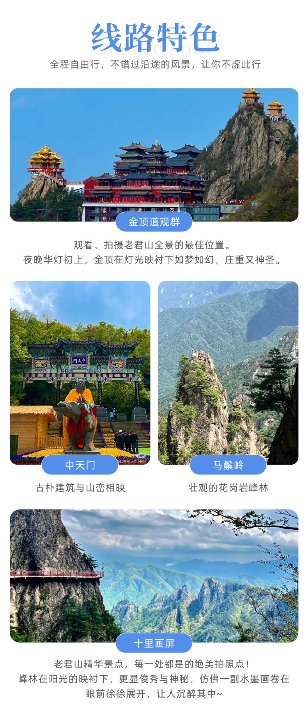 河南洛阳老君山景区一日游【一价全含 全程高速 车次四选一】【[本土发团]当地土著旅行社不转团不卖团!景区官方直通车!多个集合点选择性更多,洛阳火车和龙门高铁出站】