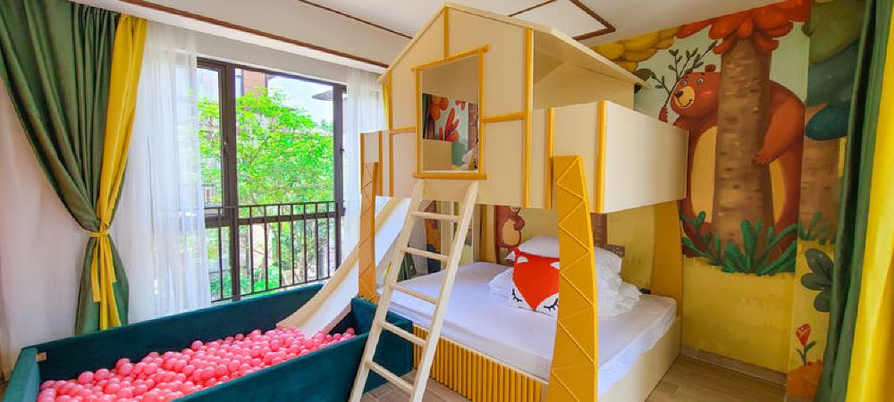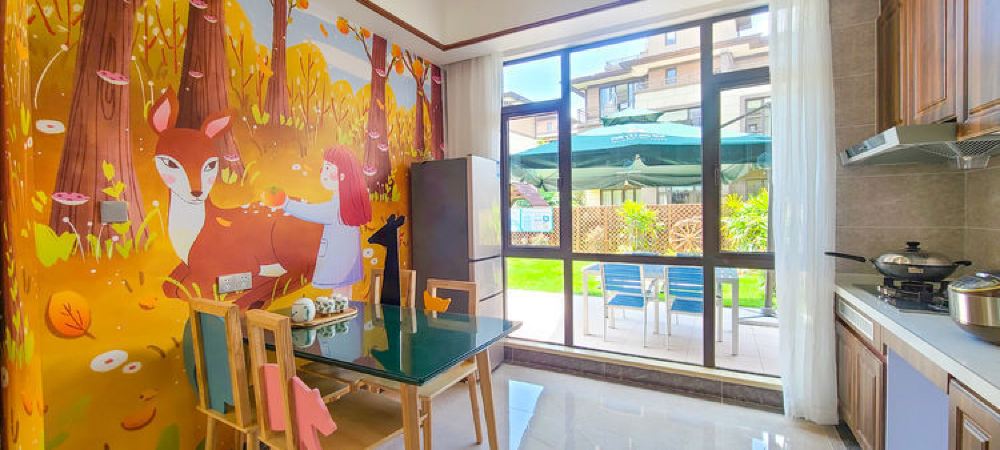 别墅带1个独立私家花园、厨房全套设施+三层冰箱、自动麻将机、儿童波波池、树屋滑梯亲子床、KTV、户外休闲桌椅设施