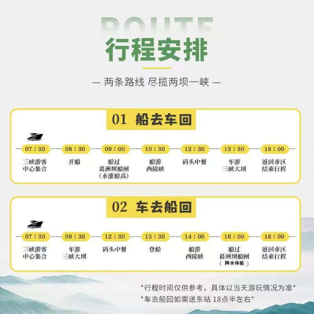 国庆提前订·宜昌两坝一峡+葛洲坝+三峡大坝+中餐·纯玩1日活动【【船去车回】or【车去船回】由游轮公司统一调配,游景点一模一样、仅顺序不同,节假日不指定,随机安排。】