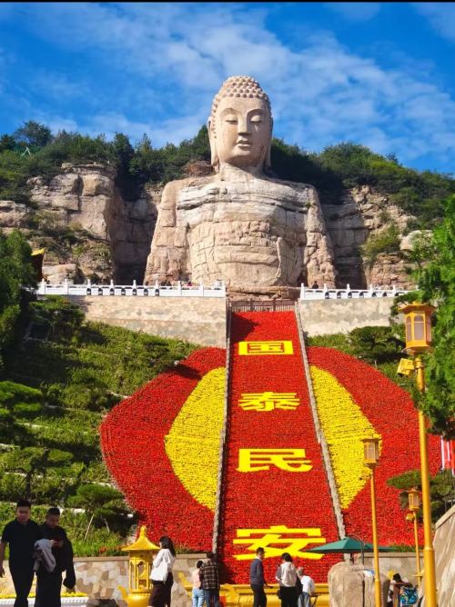 ▲ 蒙山大佛又名西山大佛,坐落于山西省太原市蒙山北峰,是国家4A级旅游景区。它始建于北齐天保年间,距今已有约1500年历史,是世界最早的大型石刻佛像,论高度为世界第二大佛。蒙山大佛为跏趺式释迦牟尼佛坐像,通高约63米,外露胸颈部分高17.5米,宽25米,气势非凡。其佛体为黄色砂岩,质地疏松,佛首由水泥砂浆制成,重达80多吨。北齐佛教造像风格明显,两肩平而宽,胸胛肥厚,身形壮硕,衣纹洗练而流畅。历史上,蒙山大佛历经多次损毁与修复,曾埋没600年,直至1983年被重新发现,2008年头部复原工。