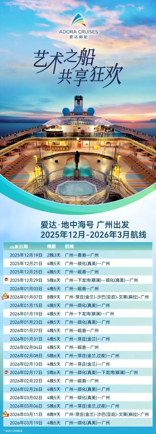 爱达地中海号|2026年广州出发 越南/韩国南沙沙滩【船上共有超过12家餐厅和20间酒吧。主餐厅提供点餐,自助餐厅每日营业近20小时。既有免费环球美食,也】
