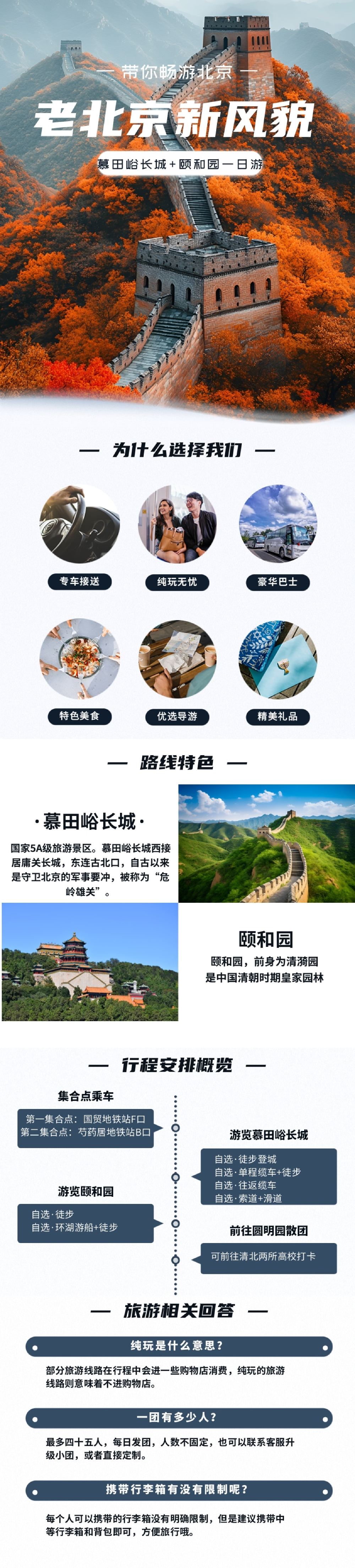 慕田峪长城+颐和园一日游【可选五环上门接◇含门票◇含摆渡车】【【行程亮点】可选五环内上门接,无购物,含门票+车费,高速直达一人一座。】