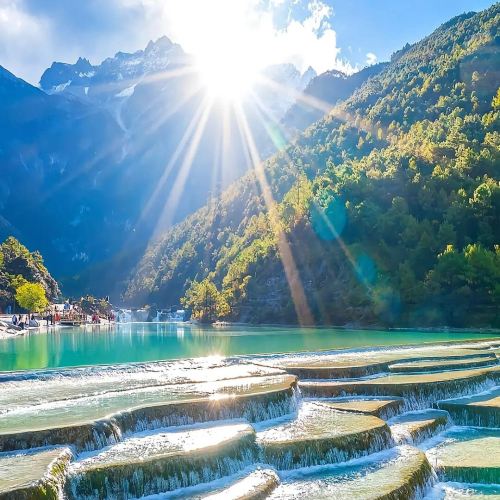 ▲ 自然奇观 垂直生态:从山脚到山顶,你能看到四季风景,2700米以下是松树林,3100米开始是冷林,3800米变成高山草甸,4300米以上就是光秃秃的流石滩。 冰川公园:海拔4506米的观景台,能看到北半球纬度低的现代冰川。 蓝月谷:湖水清澈见底,蒂芙尼蓝和翡翠绿的色彩在阳光下梦幻般变幻。