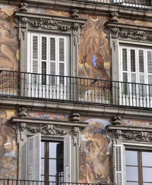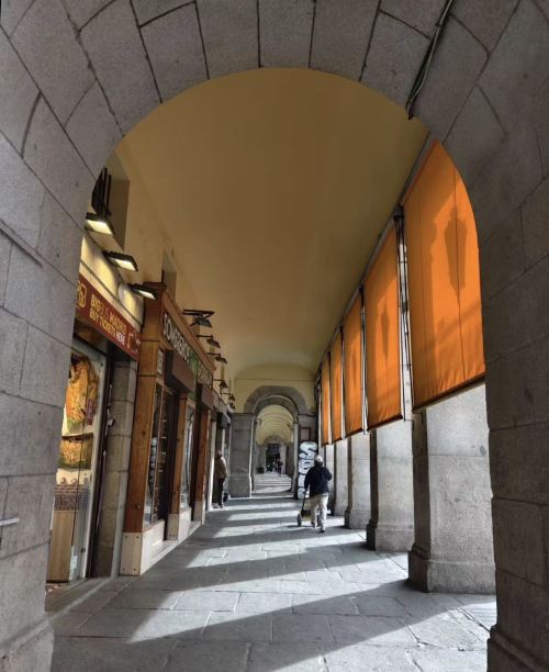 ▲ 在西班牙众多广场中,马约尔广场无疑是非常有广场范儿的。长方形包围式的结构,四周被一列回廊式古老建筑所围绕,9个对外的拱门连结着外面的市区街道。