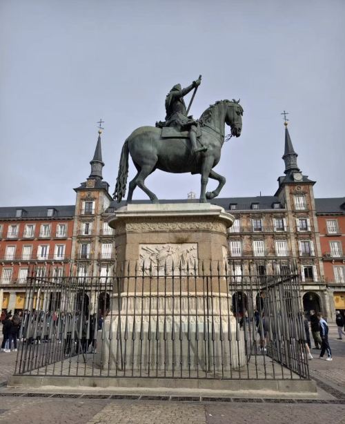▲ 立于广场中心的是主持广场修建的菲利浦3世国王的骑马雕像。