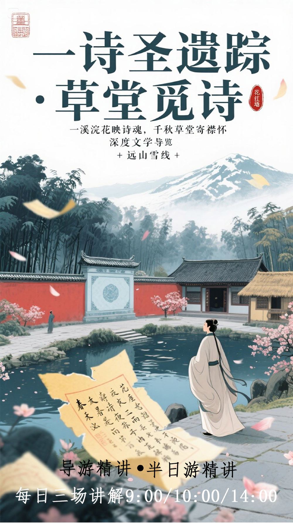 杜甫草堂讲解半日游【《茅屋为秋风所破歌》原址,】