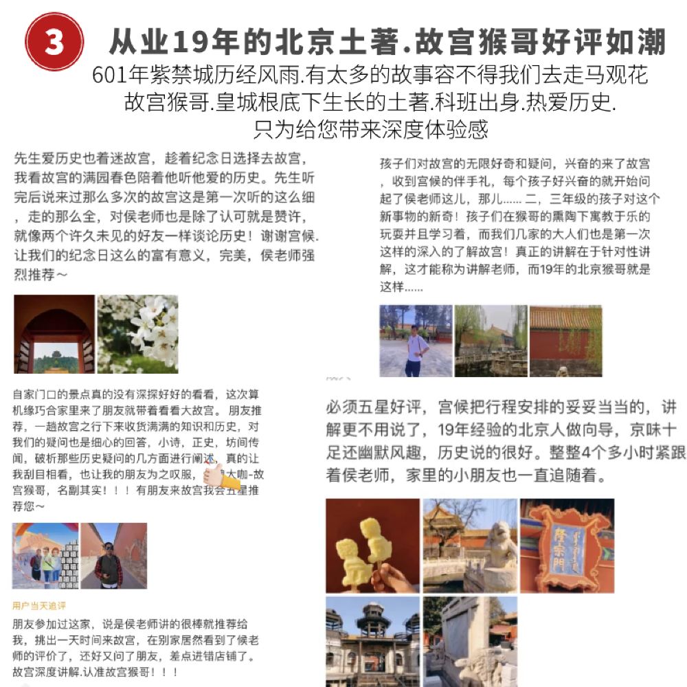 1.故宫门票提前7日开售,我们会在第一时间全力为您抢票,如遇景点门票售罄情况,我们将会在抢票当日22:00前或次日10:00前及时与您联系沟通,为您变更出行日期或换改游览景点,若您不同意订单变更则该订单可全额无损退订。介意者请慎重下单,感谢您的理解。