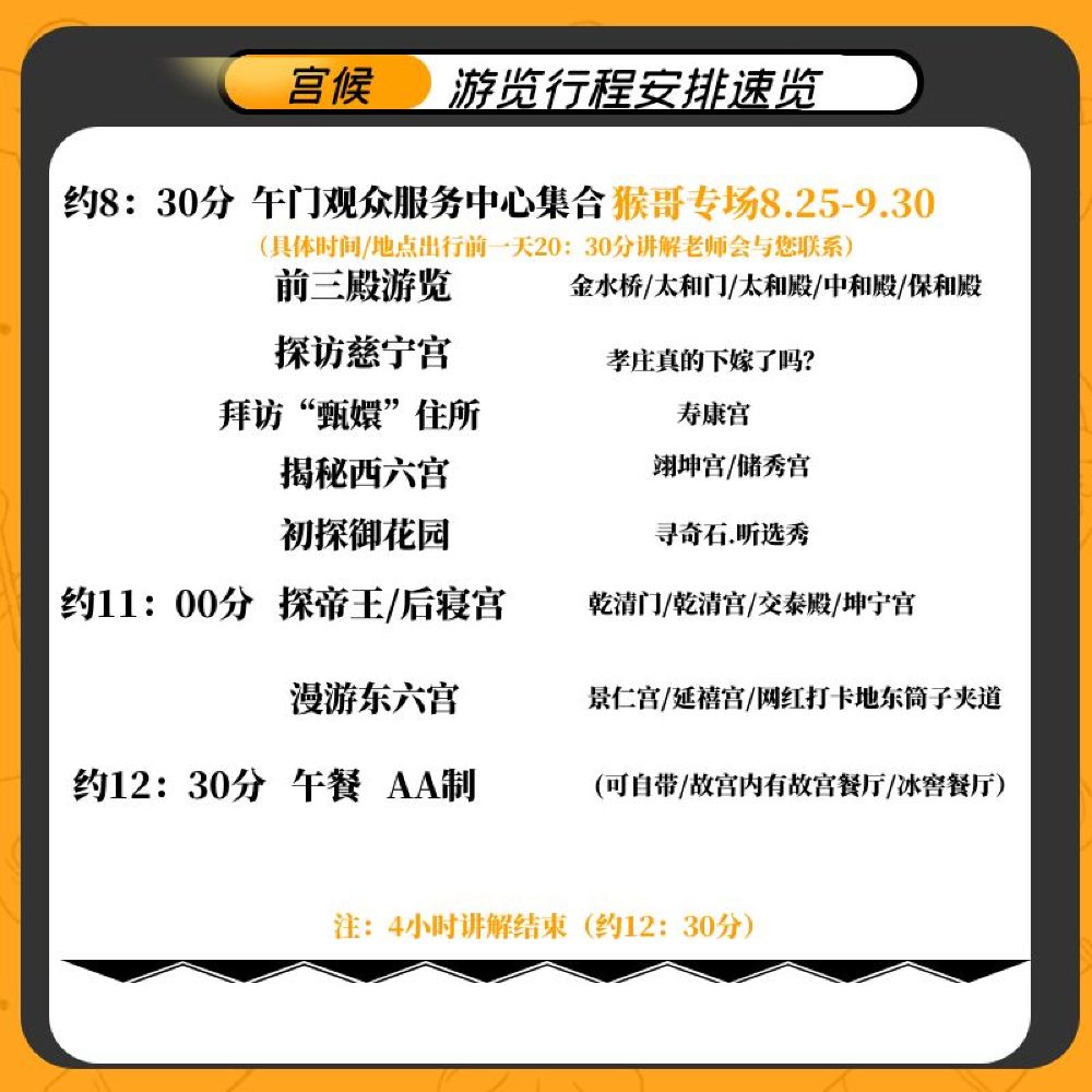4.节假日期间客流量较大,因故宫门票的特殊性,建议您不要与我们同时进行抢票操作,或同日报名多家故宫行程,这样会导致您的抢票成功率下降,介意者请慎重下单哦。